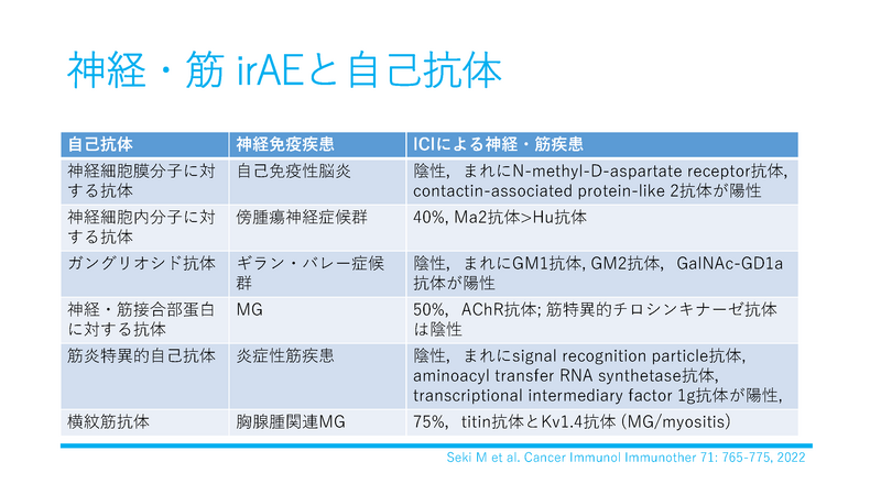 irAEの病態に自己抗体がどのような機序で関与しているか, どの程度の割合で関与しているか, 本当に病原性を持って関与しているのか等の詳細は分かっていませんが, 何らかの関与があるという報告がされております8,9).